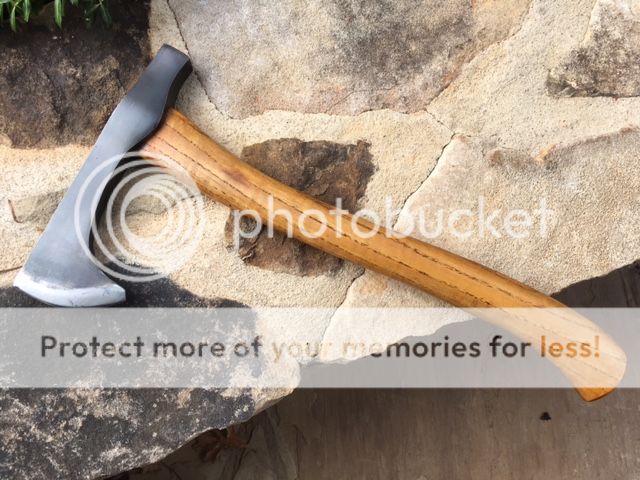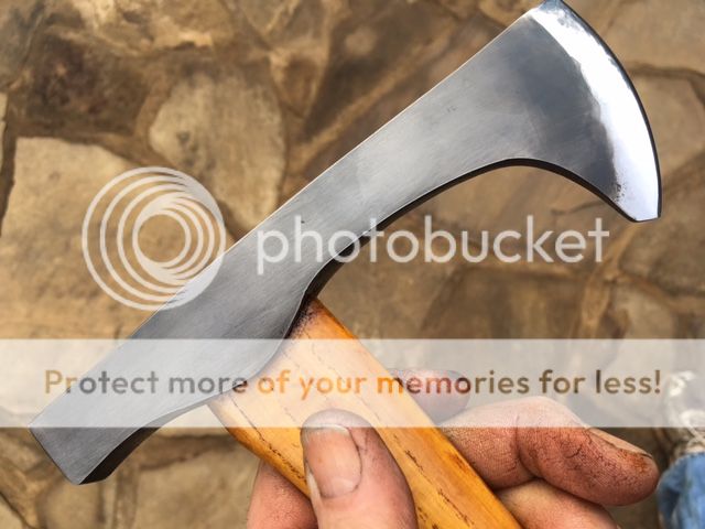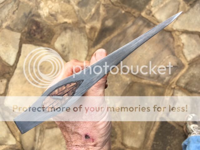 Differentially heat treated in my Paragon furnace to Rc 58-60 on the edge with a softer body. The edge will not sharpen with a file, a stone is required; it will hold an excellent edge