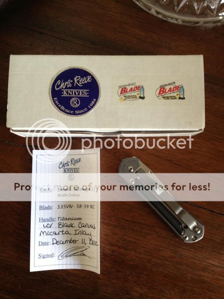 Chris Reeve small Sebenza 21 with micarta inlays. Come with box, certificate (12/12) and allen wrench. Knife is in excellent condition with slight surface scratches (see pics) from carry. Lockup is strong like you would expect and centered. Asking $350 net to me via PayPal. Interested in trades for Striders, other CRK's and mid-tech folders, let me know what you have. Email me at watchknut AT hotmail DOT com.