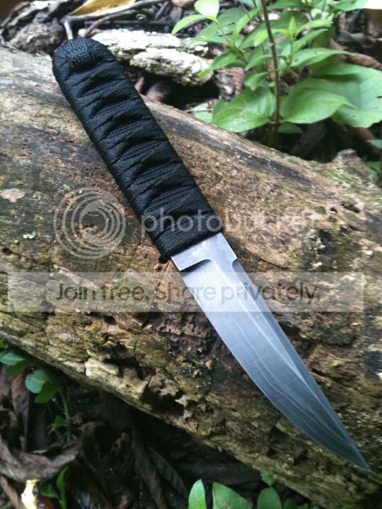 Tsukamaki handle with black flat cord underwrap - West system hardened.