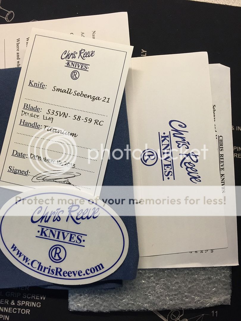 Purchased by myself direct from Chris Reeve. Excellent condition and carried only a few times. Not used, original edge. Clean knife, smooth with no blade play. Great detent, lock up and centered. Only slight wear on the tip of one of the thumb studs, very light wear. Comes with everything but the tube of grease. Has original box, papers, tool, locktite, rag and sticker. It was $400 shipped new.