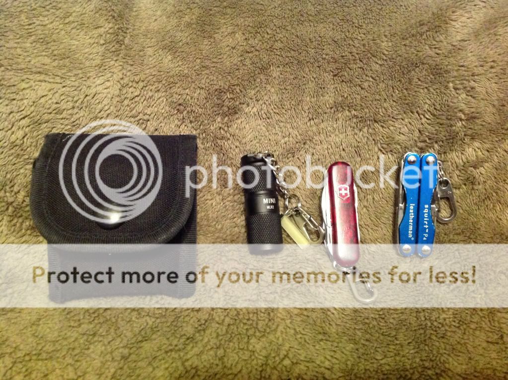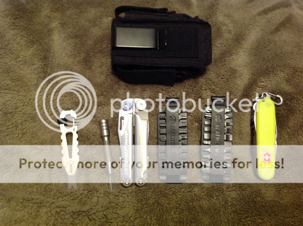 So the basic situation is this, I'm a corporate AV tech working at a small resort. Since I work in several rooms, across several buildings, I like to keep a few things handy at all times. At the moment I carry my phone (galaxy nexus in a defender case, maxped large radio holster) LM rebar in leather, keys and card on one ring and a nite-ize key rack with LM style cs(for the scissors) Fenix E05, Widgy bar, and lens cloth. The other thing, is I really don't like stuff in thigh pockets.