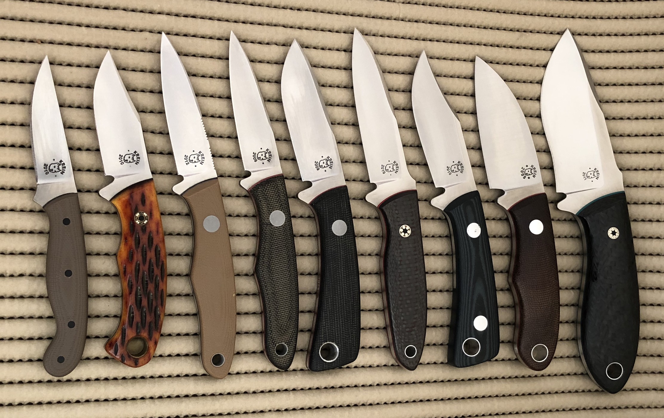 Right now this is what my collection of fixed blades consists of, more than I want to have but I really like every one, even that holiday printed one, it's handy for opening packages.