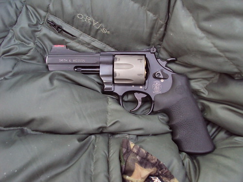 As you may have seen, I have been posting on here about choosing a medium/big game hunting rifle. Another item on my long list of guns that I must have is a .44 mag handgun. It is on the list because I want some back up for hunting or hiking trips where I am in danger of running into some tough critters such as mean hogs and bears. And, well, isn't the best way to save money when buying a gun to buy another one and try to leverage a good deal? (that is the logic that I am going to go with)