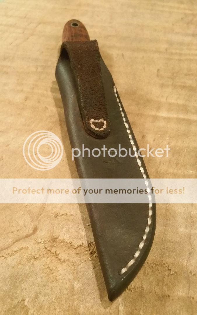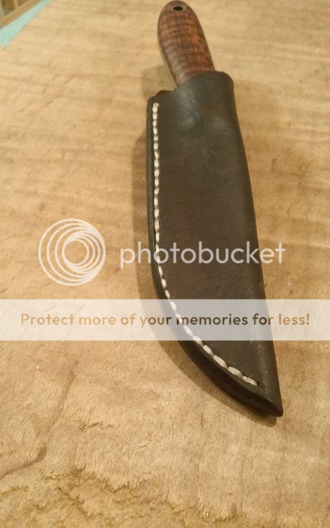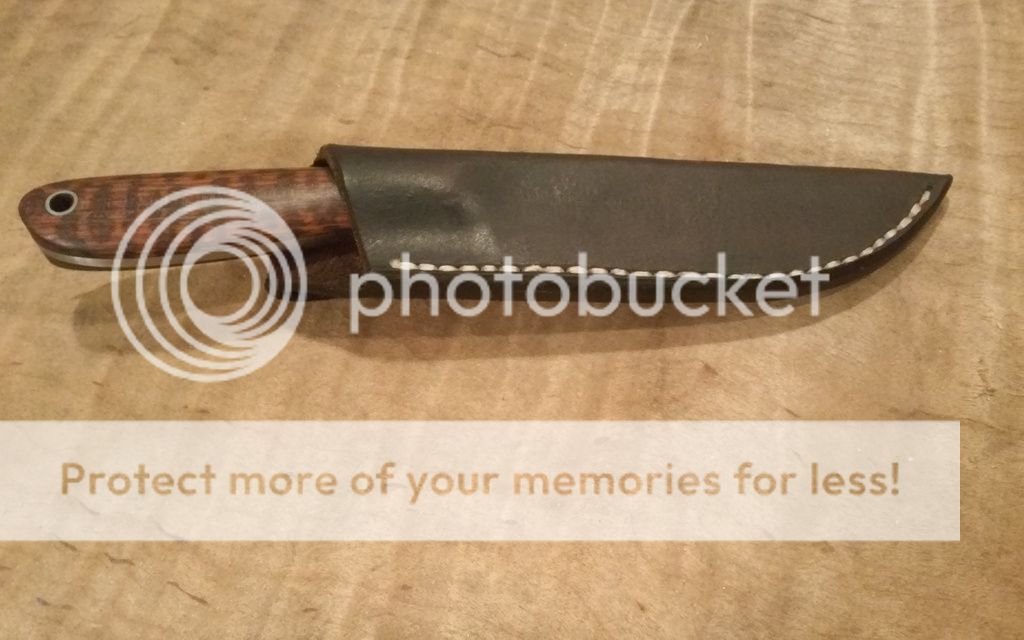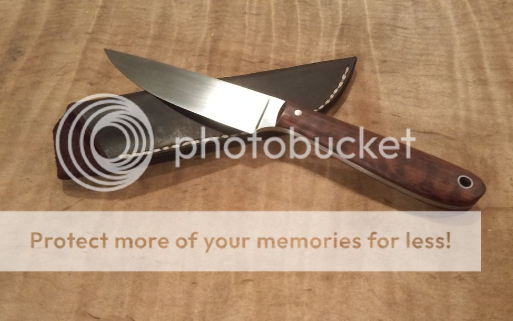 Handles- Snakewood with one 1/8" pin and one 1/4" tube (both stainless). I used West Systems G-Flex epoxy between the tang and scales.