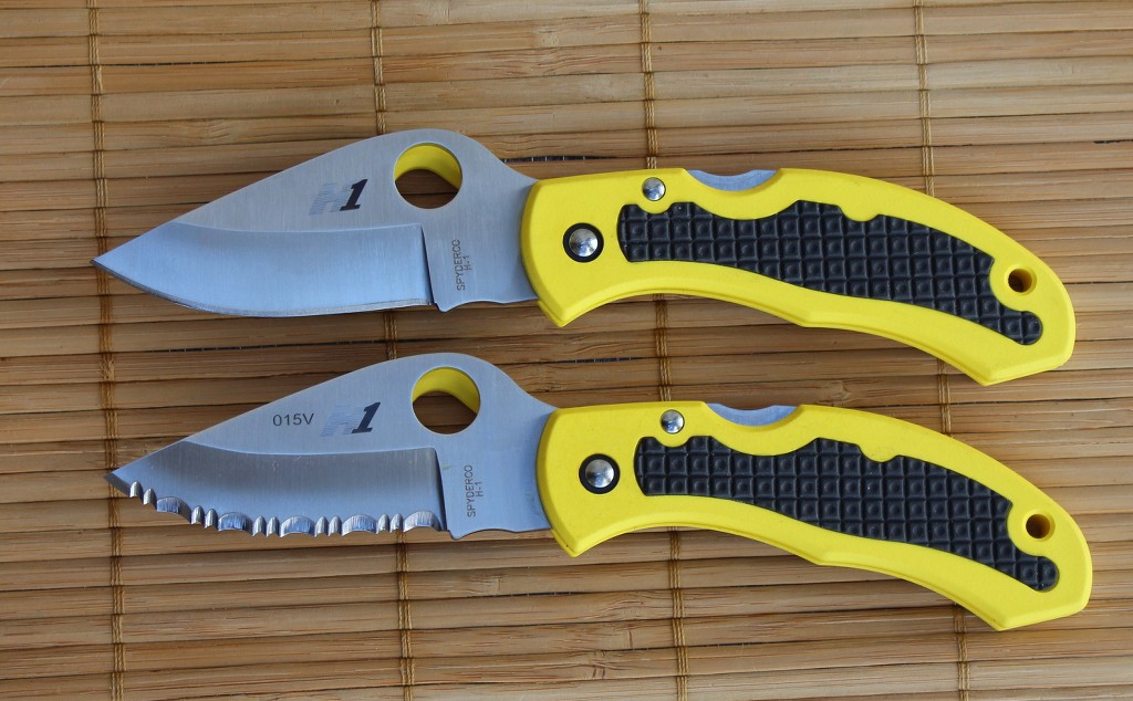 I have a Spyderco Snap It serrated in Aus-8 that I may have purchased 20 years ago. I don't use it much, it hangs on my trout fishing vest. (Man I need to go trout fishing more!) However...