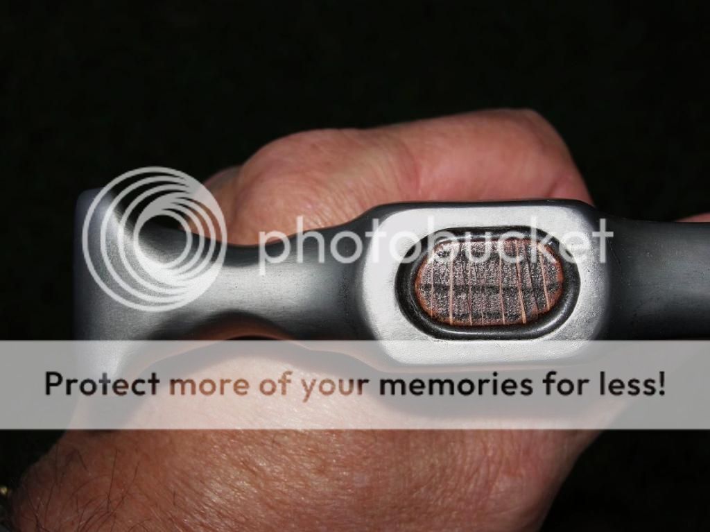 As you can see, ALL the rough areas have been smoothed and shaped to a fairly high level. At one time I actually mirror polished the entire handle, but found I didn't like the "slippery" in hand feel. A hand brushing with red scotch-brite pads gave me the finish I wanted, and super comfortable in hand.
