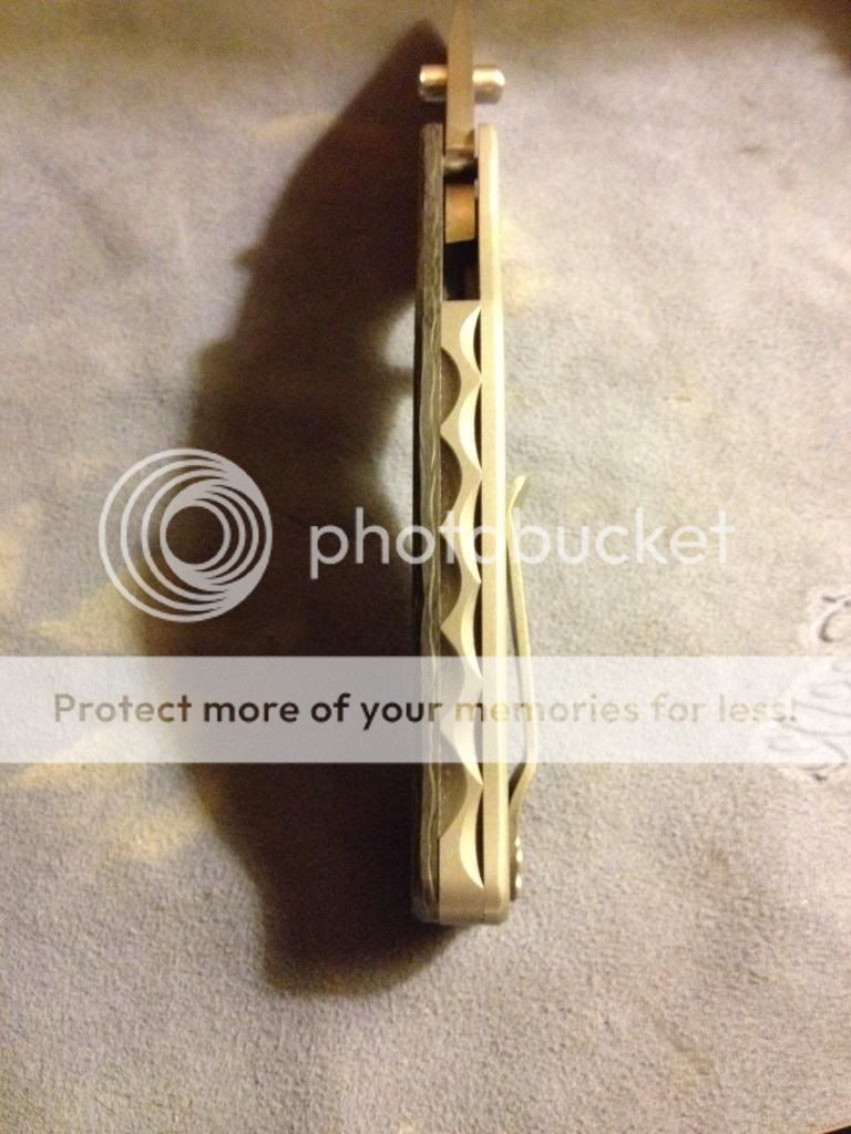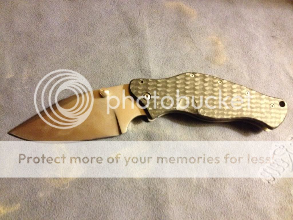 Sniper Blade Works LPC Carbon Fiber/ Ti construction. Hamon steel. Used. I carried this knife a handful of times never cut much with it. Its in excellent condition. The only signs of use are light marks on the blasted ti side and pocket clip from being in my pocket. The one mark on the end of the pocket clip is from when Lance made it. Lock up is very solid no stick what so ever. Action is buttery smooth. No blade play in any direction. Blade is dead center. The Ti back spacer is just awesome. Its hair shaving sharp with a mirrored polished edge. I couldn't get the sniper blade works symbol to show up on camera but its visible in person and its on the carbon fiber side. I think this is a one off I've never seen another like it. $575.