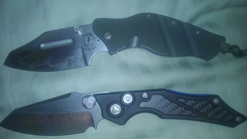 I recently became obsessed with finding a knife that handled very forward in the grip to enable fine cutting work and skinning of sorts. I clean a lot of snapping turtles and if you have done many of these prehistoric cold blooded beasts, it takes a very sharp but yet strong knife to handle the many tasks involved. I have a Sniper Bladeworks that is as fine of a blade that I have had the privelege of owning. You can make fine detailed cuts and then plunge the blade through a car door. Just incredible. The other night I was at a friends house and he had a 30lb snapper that needed my service. I only had my MicroTech SF with me and my buddies jokes that knife could never pull off the job. To my surprise the knife not only did the job but has similar handling characteristics to the SBW. The angle of the grip, the style of blade, just works. So much to the point that I think I am going to grab a MA to go with my DA. Dont get me wrong, I love the SBW. But for 300.00 the MT is one helluva good blade. notice the similarities!