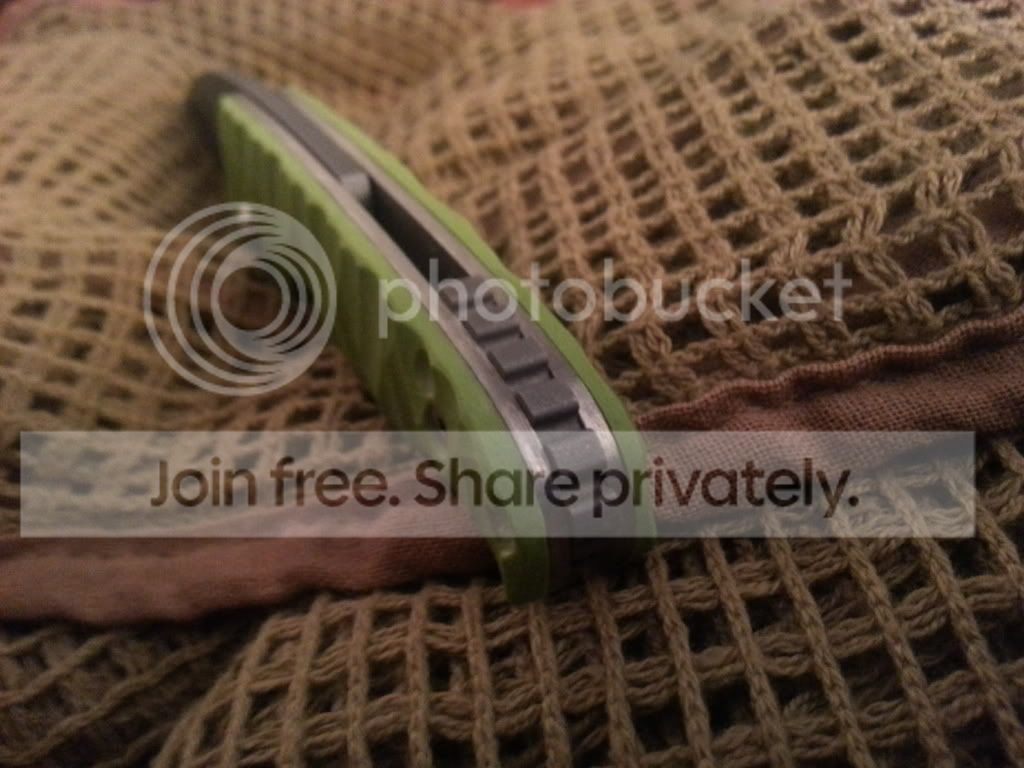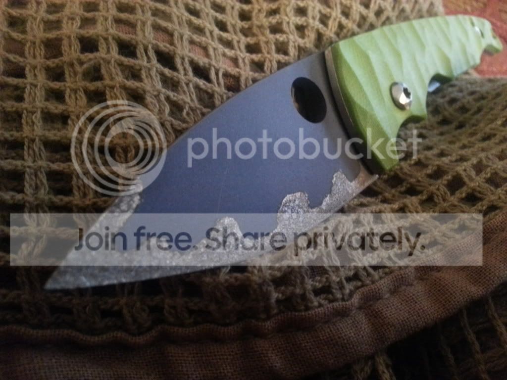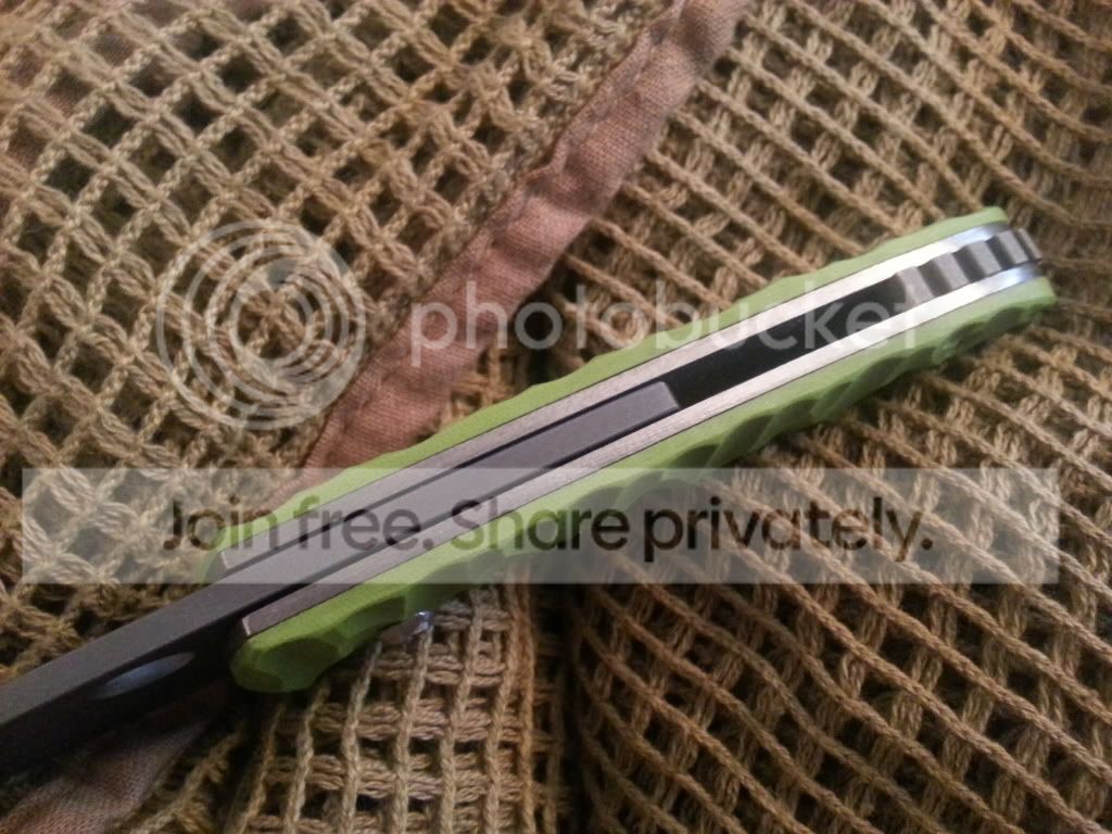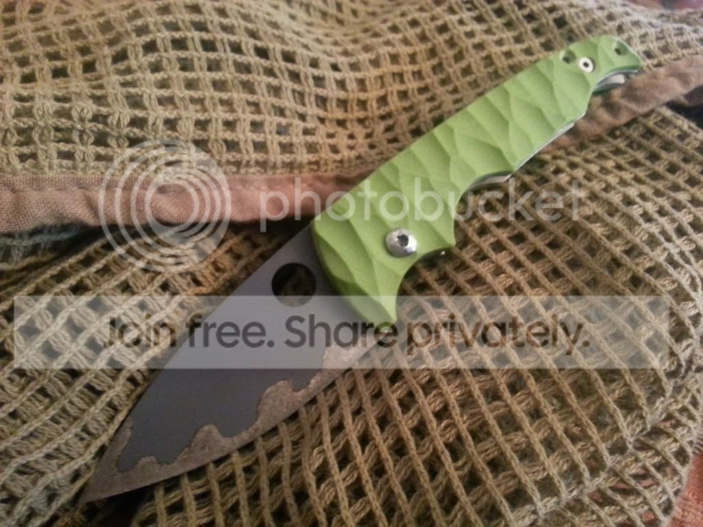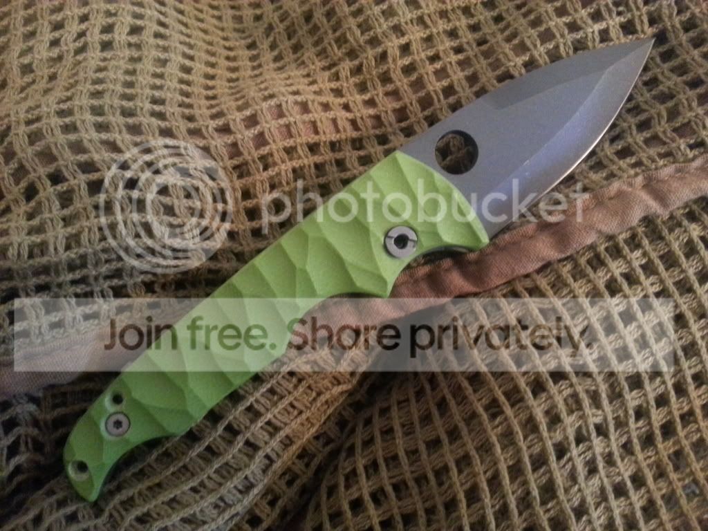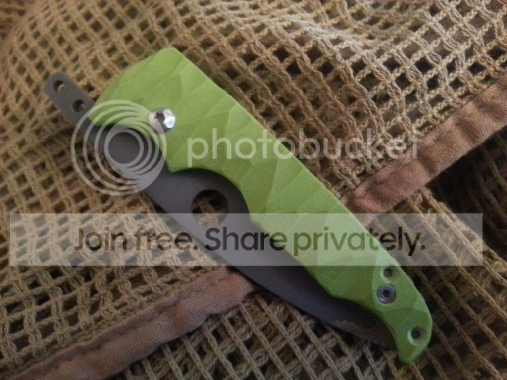 Putting this up for trade as I've been carrying my Begg Frickie more than this one and don't really need more than one friction folder. This is Mike's 'Economist' friction folder (only 50 made) with a blue anodized ti blade, and ti liners/backspacer. I have done some work to it including the toxic green scales, sculpted pivot screw head, and buffed liners. It will include the original micarta scales as well as the certificate of authenticity. It has been carried and used but is in great condition overall. This is one of my favorite friction folder designs (second only to the Begg) and it makes an awesome 'use-anywhere' EDC. I'm looking for ti framelocks or linerlocks (custom/high-end production)- plain edge only though. Used (not abused) is ok as long as the knife locks up solid and is either centered or can be centered. Please e-mail me any offers as its the quickest way to reach me. I apologize for the cell phone pics- my camera is charging ATM. Con US only please. Thanks for looking.