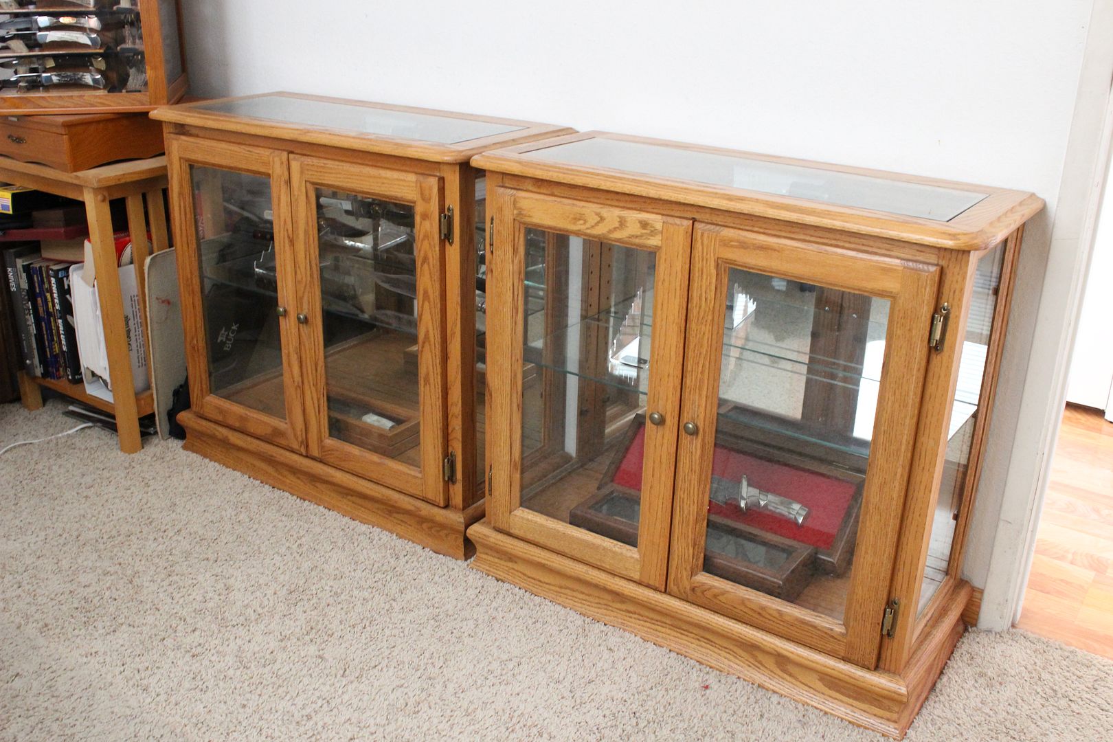 My other choice would be to repurpose an unused wood/glass entertainment center that we already have, into a knife display cabinet.
