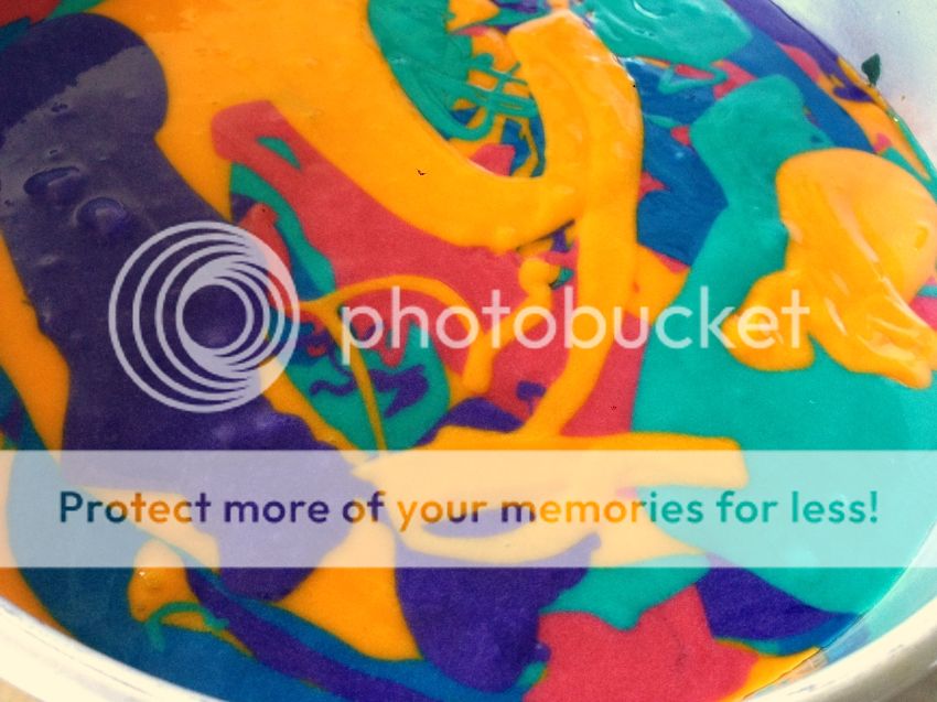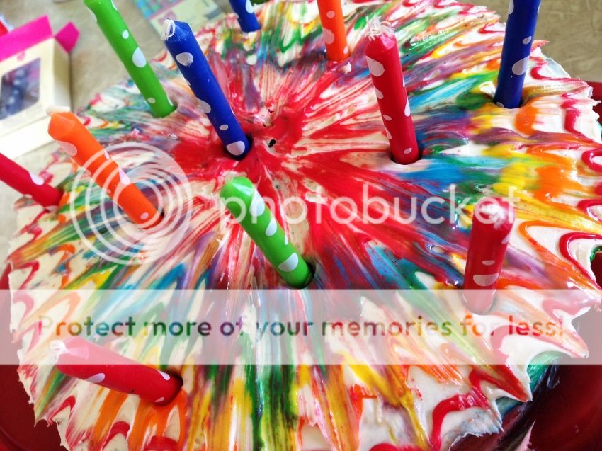 The cake was tie dyed, inside and out...well, it was fairly close to tie dye on the inside.