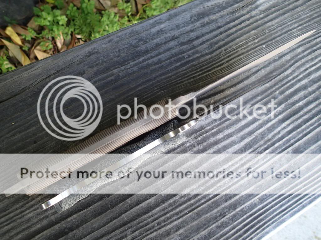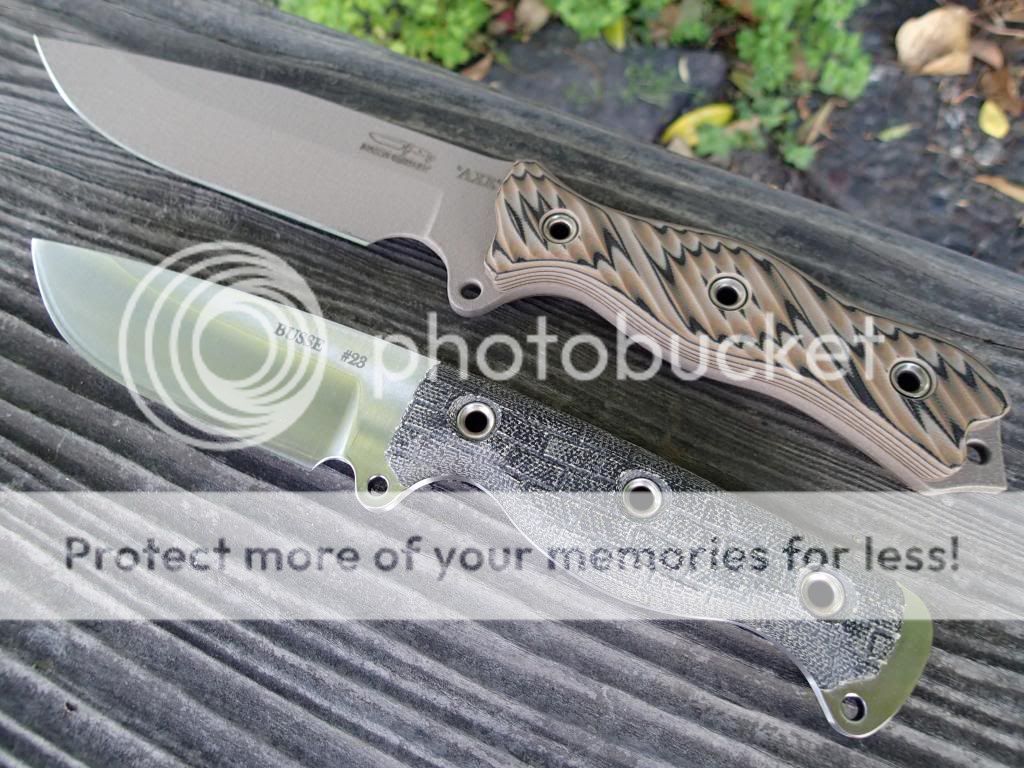 I must say that Josh (at Busse Combat) put an excellent convex edge on the SOB. It easily mows hair. Thank you Josh. The edge on the AXE Hammer is no slouch either.