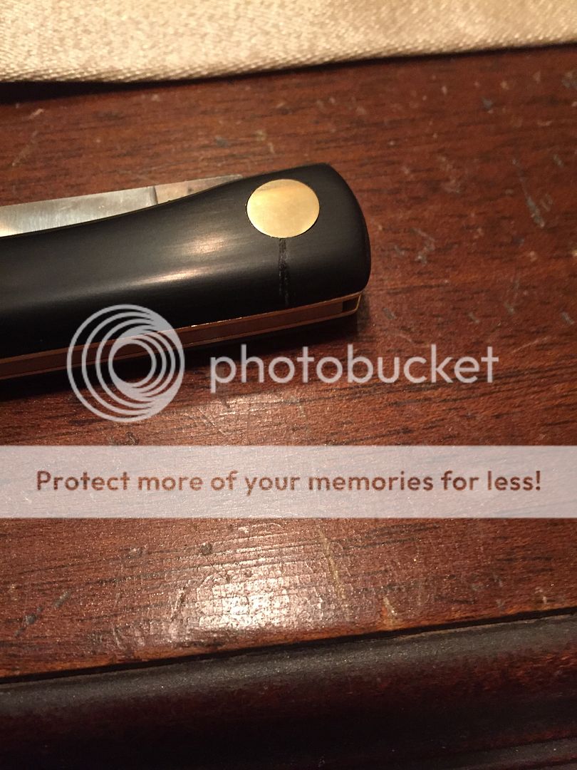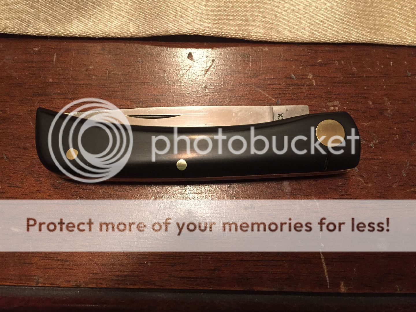 Well, my bullnose didn't show up today 😩 But the old case sodbuster did. There are cracks in the liners on both sides at the pivot. However it still locks up pretty solid. There is a tad of blade play side to side but up and down is like a bank vault. No pics yet. I'm sitting in the parking lot of Food Lion with a sleeping two year old in the back seat while the wife gets some groceries. I had the sodbuster shipped to my work address hoping it would be there during the week. I had to break in to the mailbox to get it out since we are closed on Saturdays and the key to the box is in the cash drawer. I think I may have a problem 😀 So now the question is what kind of slabs to rescale this baby with. I'm debating between green micarta or straight blue denim micarta.
