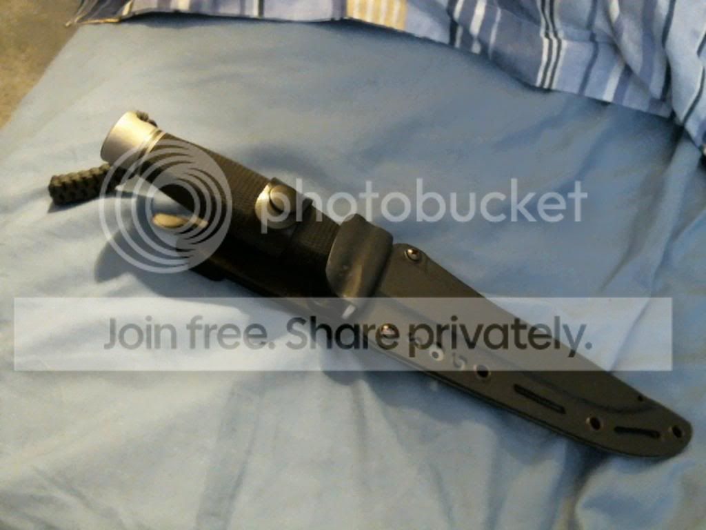 Used Gov tac, Bead blasted----rub marks on blade and kydex rub mark on guard.(illustrated in pictures) looking for: silver stag or similar fixed blades pics: