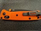 This is a brand new 533BK-2 mini bugout that has had the black scales/spacers/thubmstud swapped out for the factory orange grivory scales, orange spacers, and orange thumbstud from a 533 bugout. (Note: the original black scales/spacers/thumbstud are not included.) Never used or carried, has factory edge. Excellent action and great blade centering. $SOLD