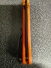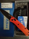 This is a brand new 533BK-2 mini bugout that has had the black scales/spacers/thubmstud swapped out for the factory orange grivory scales, orange spacers, and orange thumbstud from a 533 bugout. (Note: the original black scales/spacers/thumbstud are not included.) Never used or carried, has factory edge. Excellent action and great blade centering. $SOLD