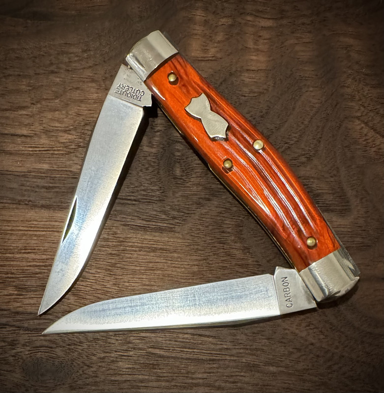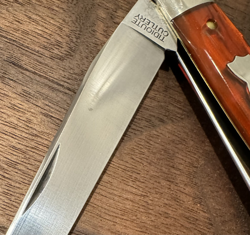 Light user, never sharpened, light pepper spot on one blade. I cut some fruit…but I flitzed the patina off. The snap and action are stellar. It’s just sitting and needs a good new home.