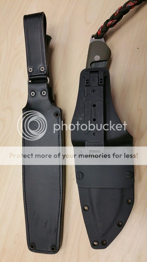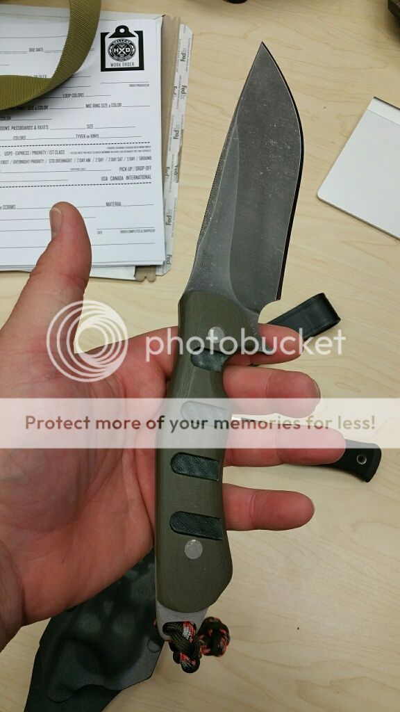 2. R.S. Knifeworks Requiem HD a limited run by Rob 52100 steel .25 thick with a sweet hallow grind and milled od green G10 handle 11.75 OAL 6" blade has a few scratched from the kydex new and unused $235 now$220 now $200 TYD Conus only!