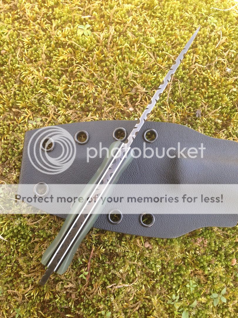 Handle is made with beautiful Ghost Jade G10 with white and black liners.