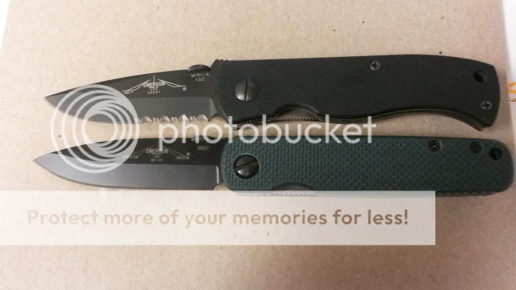 2. SOLDLike new, no box, 2001 Emerson Mini CQC-7A-BTS - really great little EDC in a hard-to-come-by package. This has the classic, older "rounded" G10 scales. Its also the A-shaped blade w/o wave. It has been carried lightly but is in 90%+ condition. Also sharp, smooth, solid and centered. No box, knife only. $125 + $5 shipping