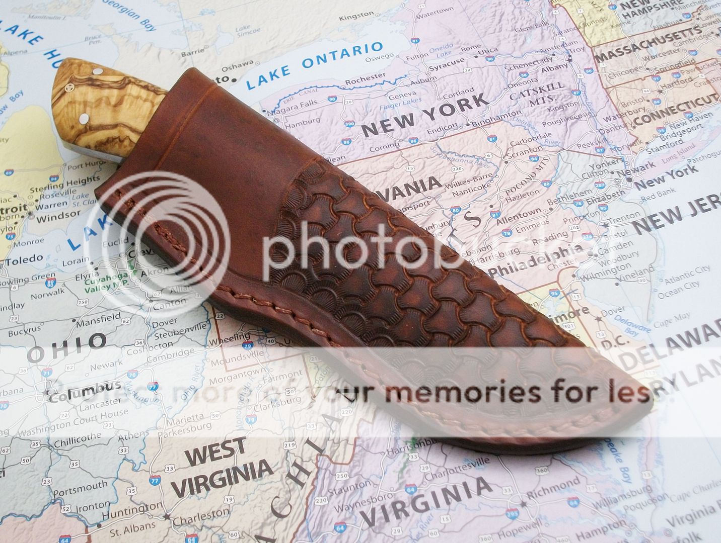 8 1/4" Overall / 4" Blade. Comes with tooled leather sheath.