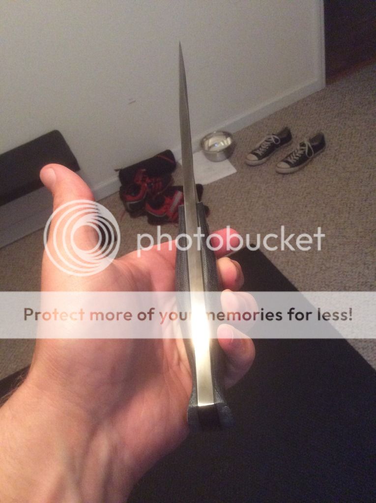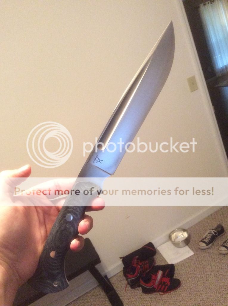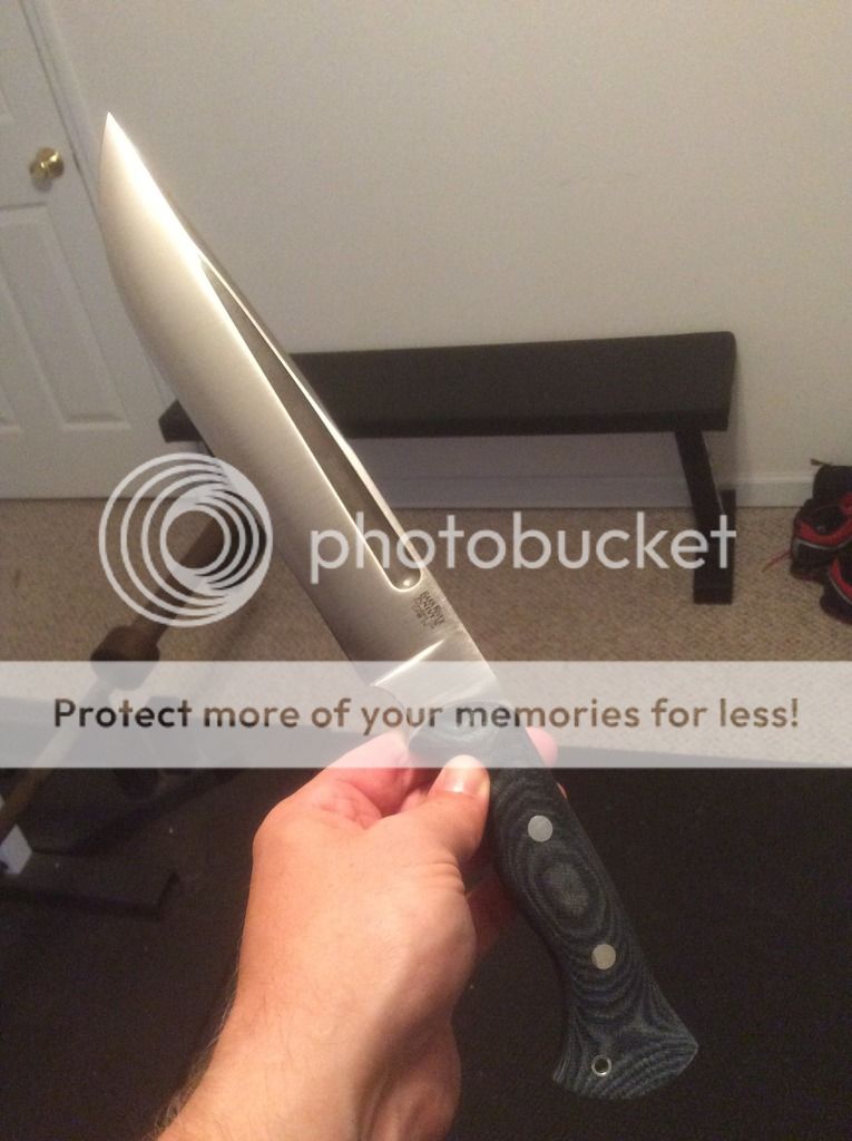 This one is new in box. It has never been carried or used. The sheath has the upgraded water proof treatment and is very high quality. It also has a dangler attachment as seen in photos so there are multiple carry options. It has 3V steel and blue denim micarta with a black liner. This is one awesome knife! I'm asking $old and I pay the Paypal fees and shipping.