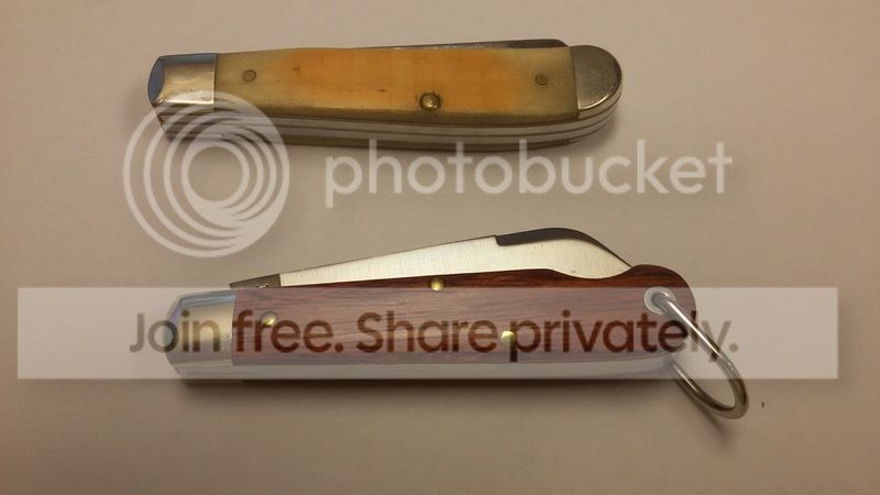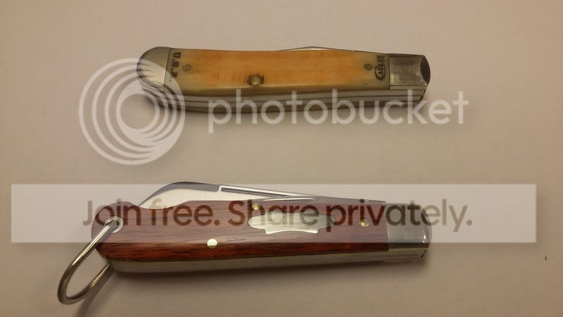 #1 c. 1946-1956 Imperial long pull peanut with easy open notch on the pen blade. Scales have shrunk but not terribly and a few very light gaps in the spring. Overall for a 60-70 year old knife this thing is in pretty amazing condition. Solid snap, maybe a bit soft on the half stop, and is still plenty sharp! Very light blade rub showing towards the tip of the clip blade. $sold