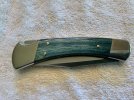 SOLD - Buck Knives Custom 110 BLUE WOOD Folding Knife - LNIB - U.S. Made - Imported Sheath - Blade BOS S30V. Asking $111 TYD.
