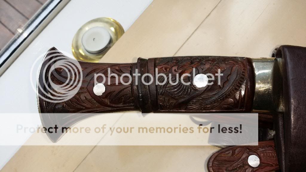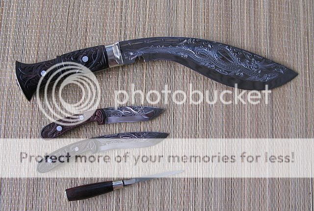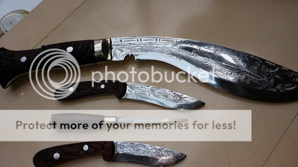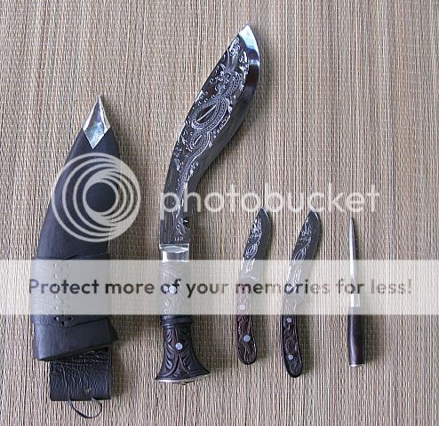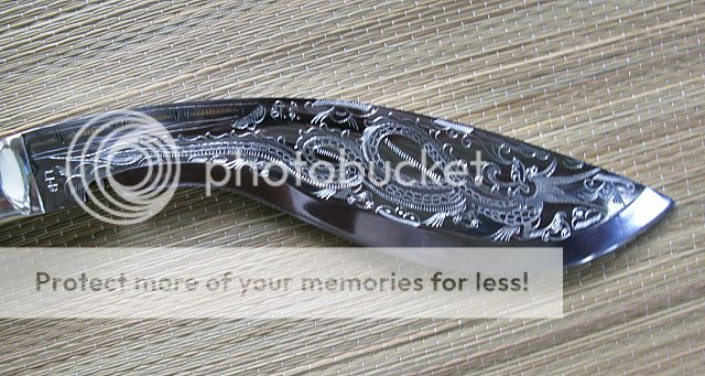 I have a beautiful Cherokee Rose Khukuri with Dragon engraved on both sides of the blade and handle. I am the only owner (bought from Yangdu at HI) and have had it since 2009. Never used or sharpened.
