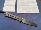 Original owner, bought in November 2017 from knifeart. Has been carried and lightly used, blade has been sharpened, mirror edge, as the original was too dull for my taste. Knife is in good condition, few faint marks on blade, only visible in right light. Tried to capture it in the pictures. Box, hex tool, warranty, papers all complete.
