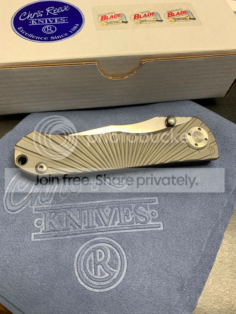 Chris Reeve Umnumzaan Wilson Combat, S30V, 58-59RC, Titanium starburst handle. Never used or carried. Scales have very slight handling marks. Otherwise, perfect. $475 paypal friends/family, includes free priority shipping to CONUS.