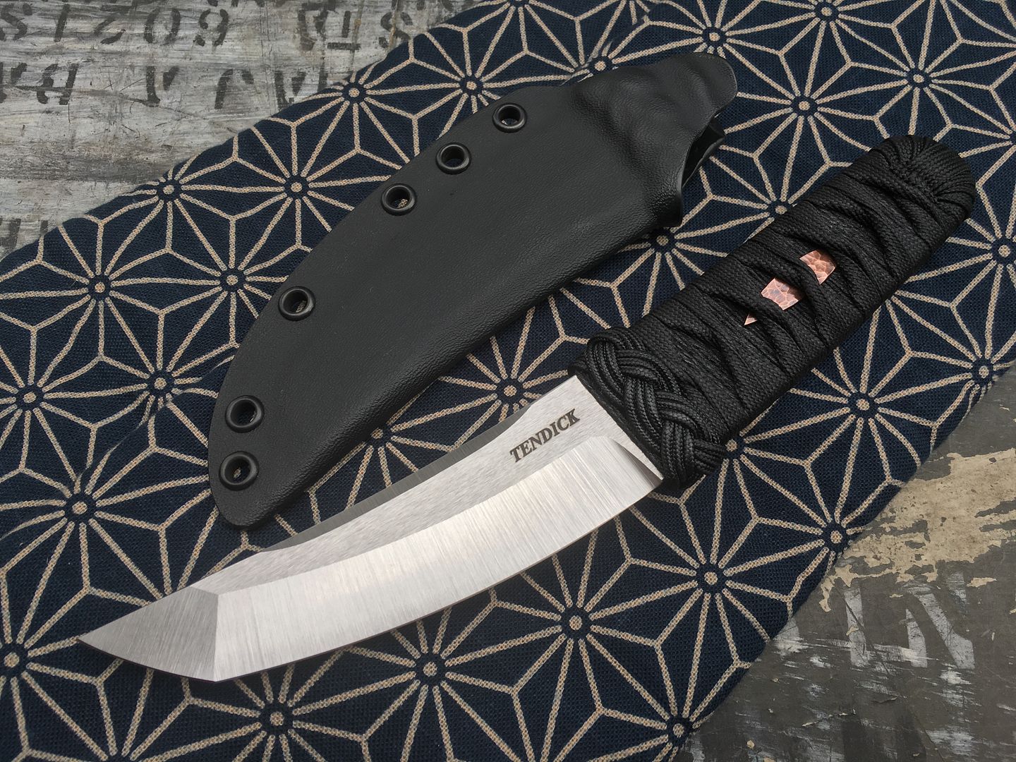 -Handle - Tsuka Ito. The menuki is hammered copper. The handle is soaked in west systems marine grade epoxy. It is washable and very durable.