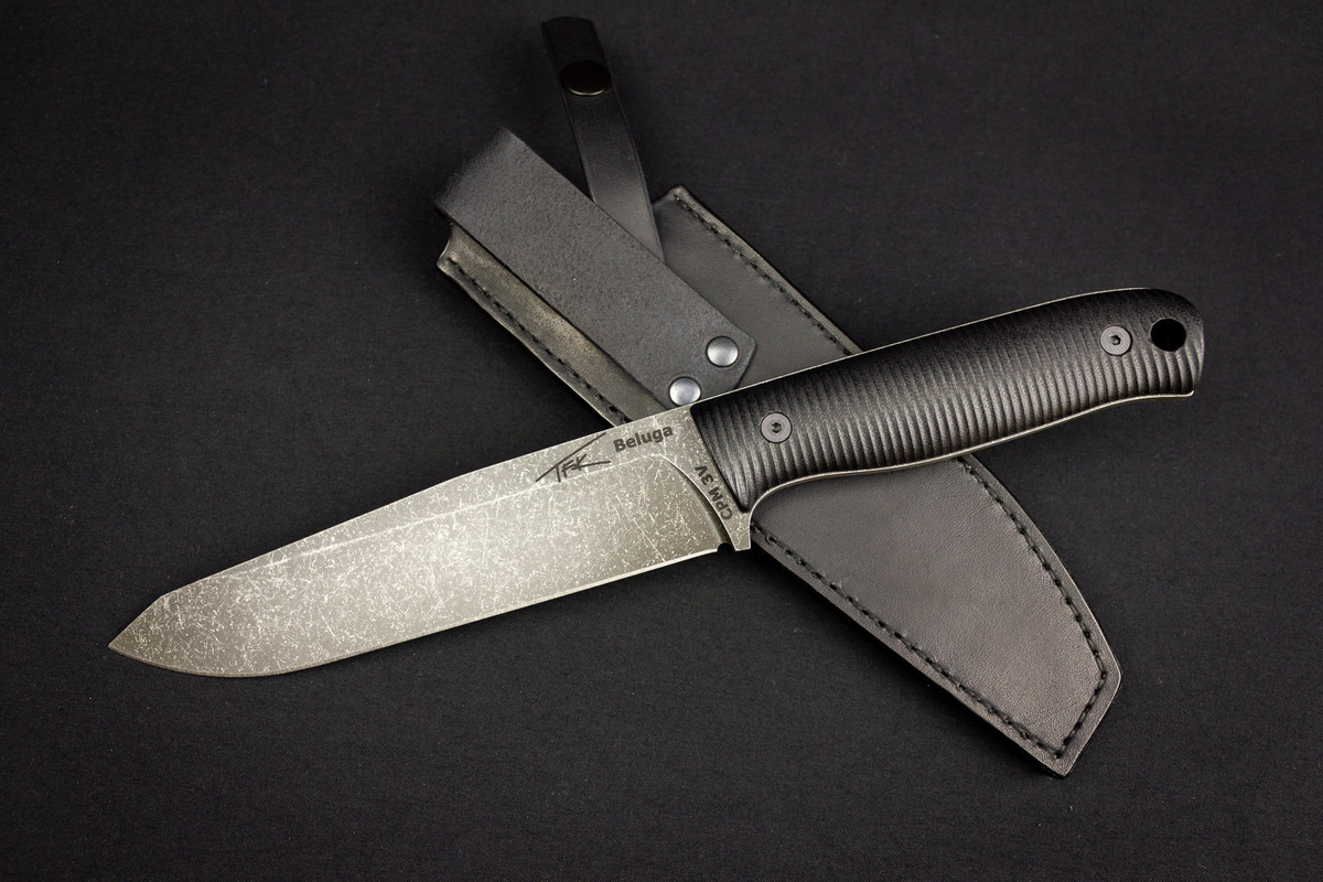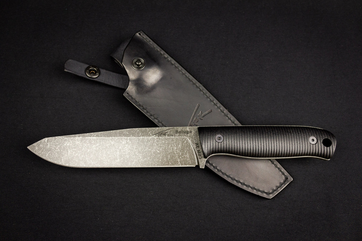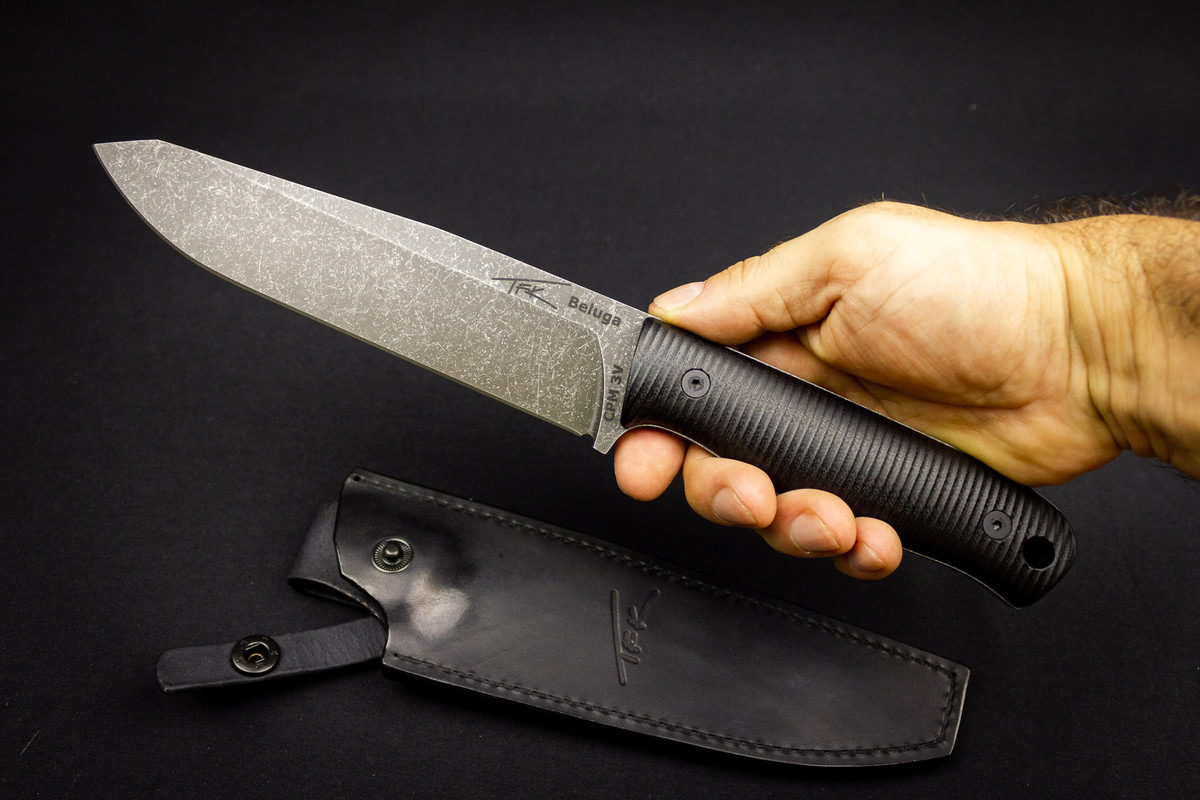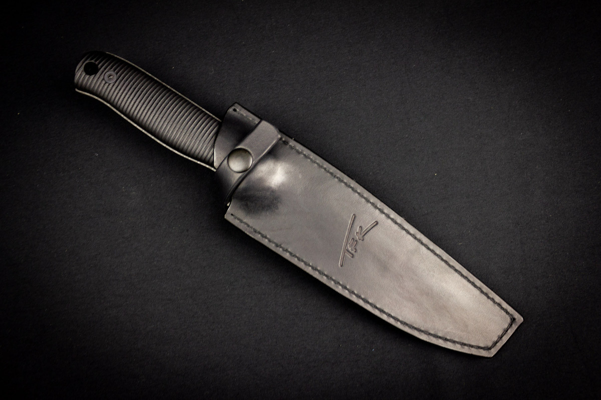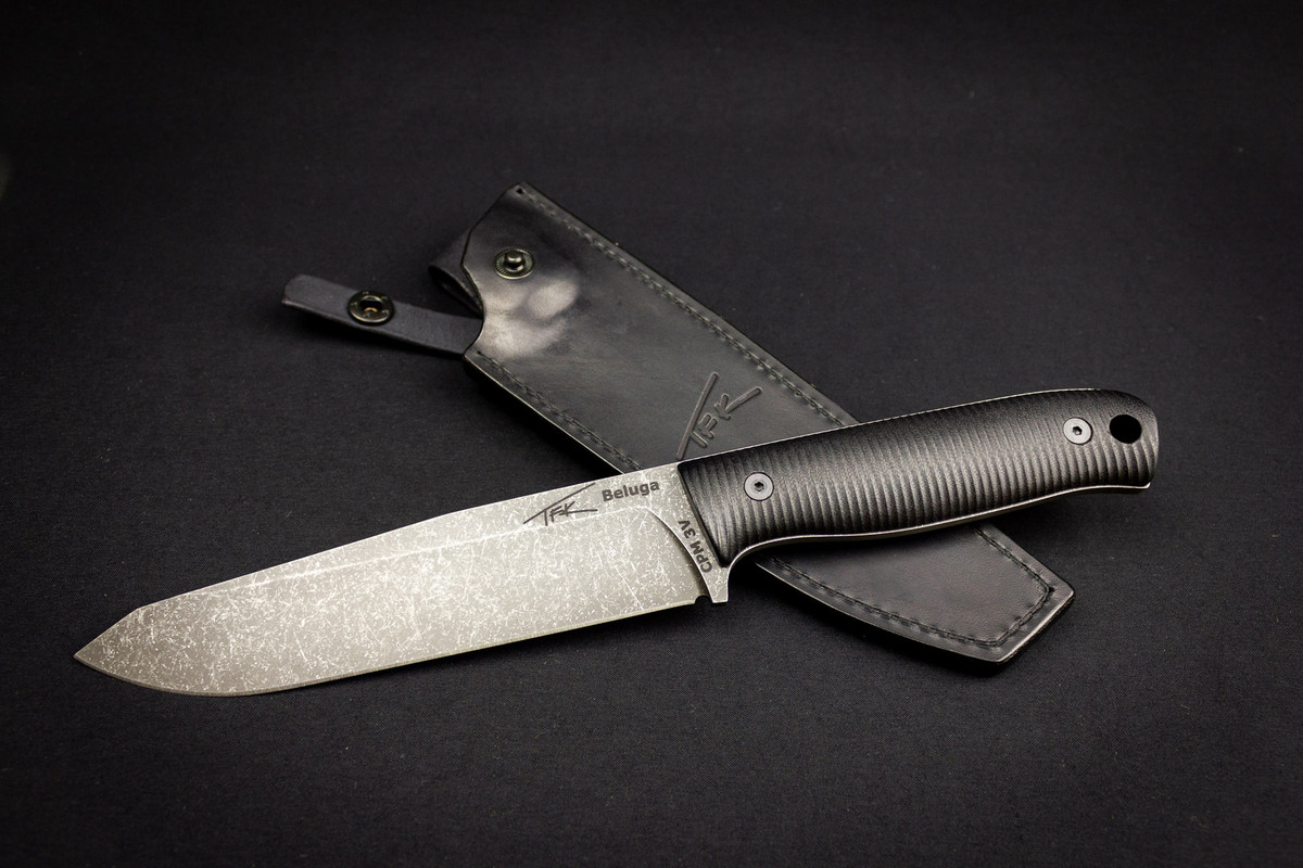 (sold) CPM3V, G10 handle, leather sheath, TFK-Beluga