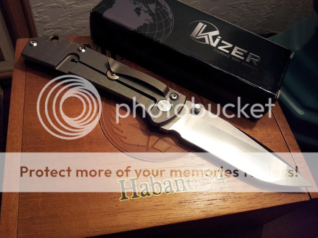 Kizer Titanium Frame lock- NIB, S35VN steel. Amazing fit and finish on this. Has a nested liner under the green g10 scale. Ti frame lock has colorful anodizing. Super smooth with early lockup. No play, easy to disengage and no sticky lock like alot of Ti frame locks. Dead centered! About 4 3/4" closed with a nice spanto-like grind.....$SOLD thank you sir