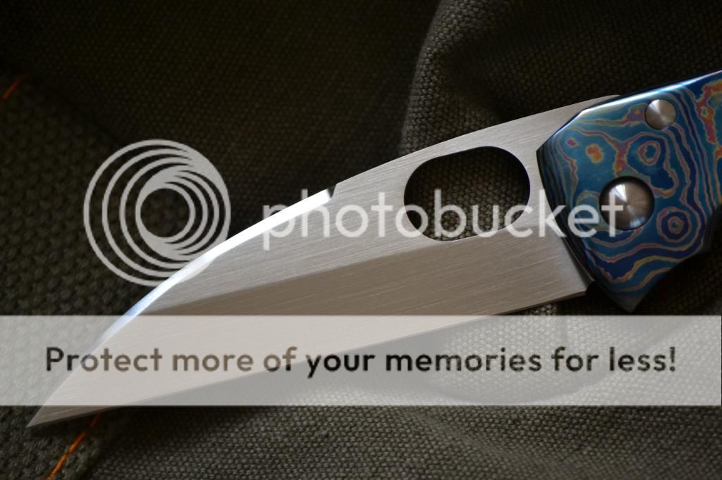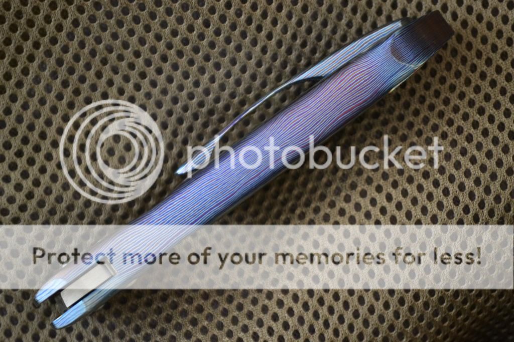 **SOLD** This is the absolute pinnacle DRUID folder hand made by Peter Rassenti. Blade is a beautiful 3.5" wharncliffe style S35VN steel hand rubbed satin finish. The handle is a one piece Three Alloy Timascus integral frame and clip hand rubbed to 1200 grit and masterfully heat colored. Pivot system rides on a GTC bearing system with custom hardware. This knife is in mint and pristine condition. It is flawless. I am the first owner. Never been carried and never used. Comes with matching custom knife case with Peter Rassenti logo. Please see my pictures of the knife for more details.