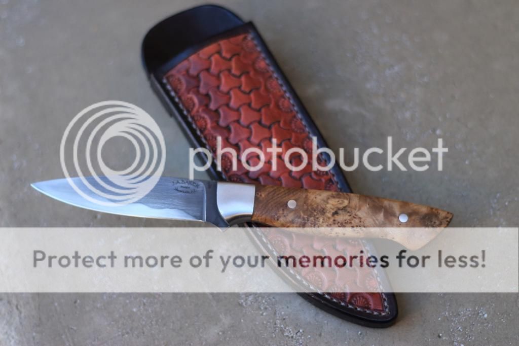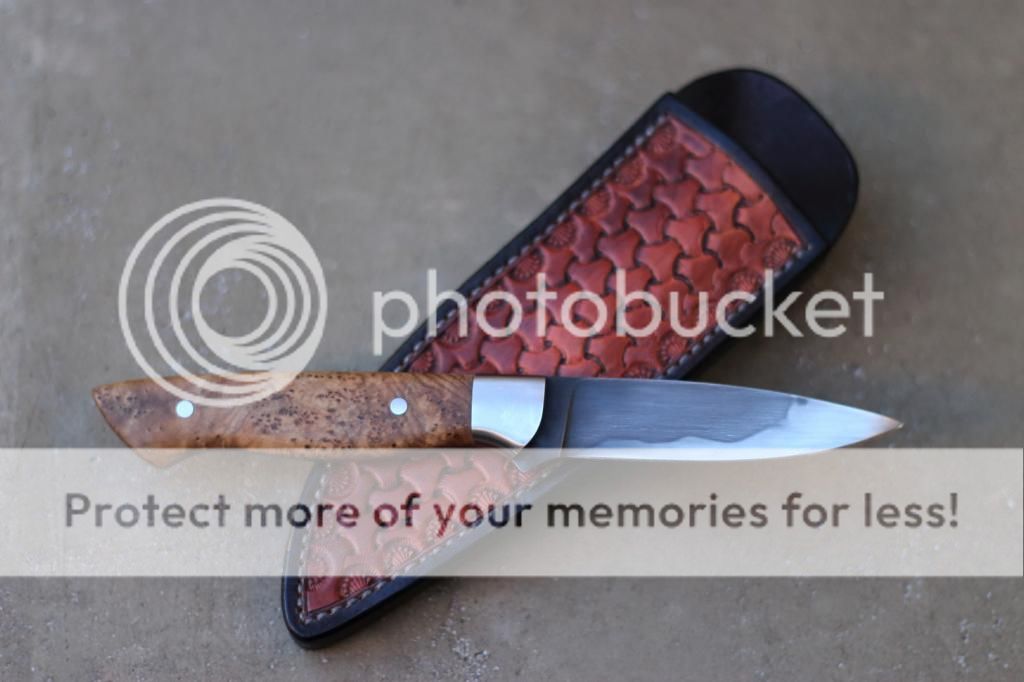Hey guys, I have for sale today an EDC drop point in 1095 with stabilized black ash burl scales. The blade has been clay quenched and is etched to show the hamon. The stabilized black ash burl scales are thin for a low profile. Thanks for looking, Jeff