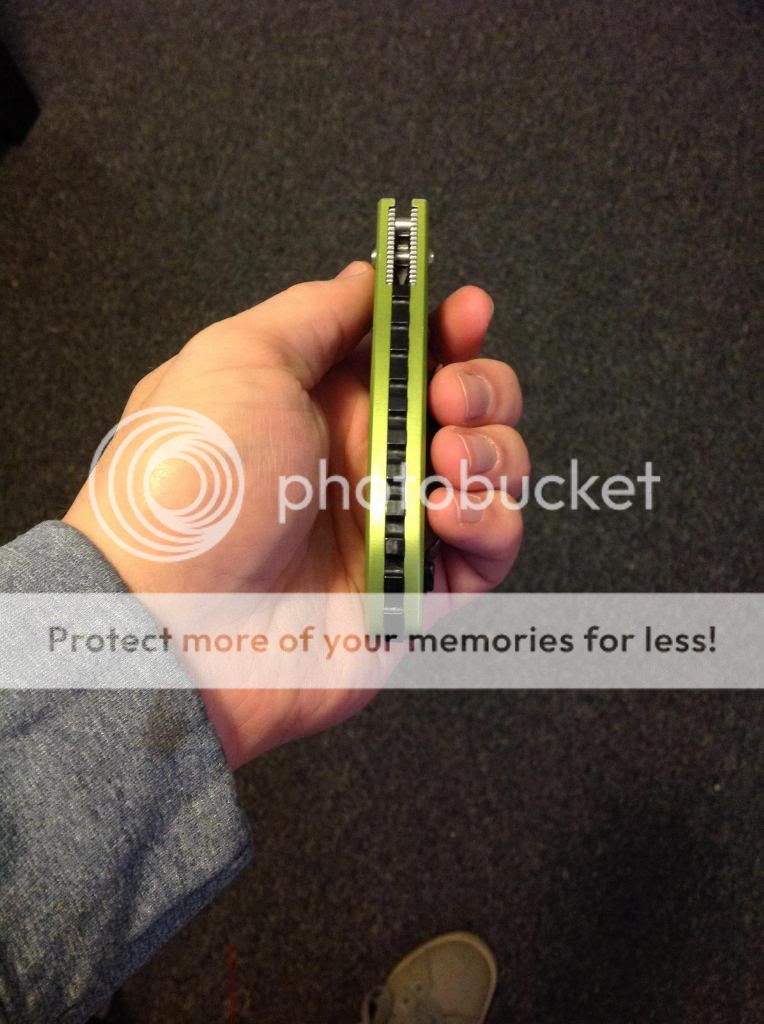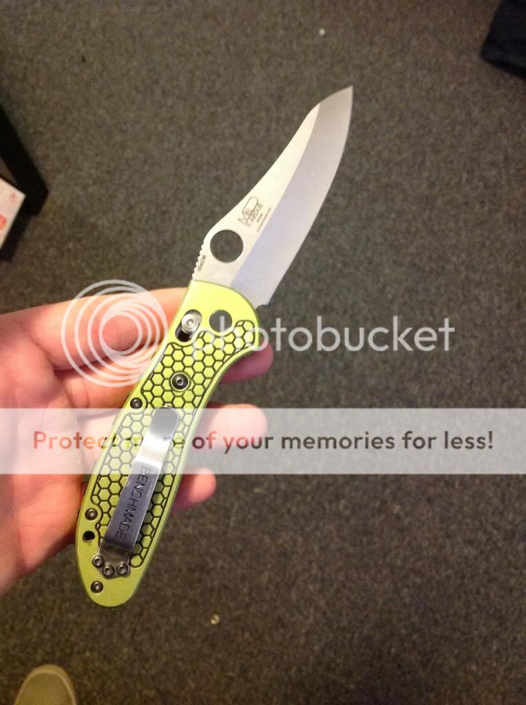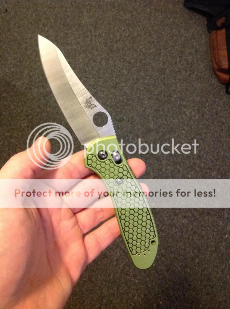 Next up is a Large Benchmade Griptilian with Allen Putman scales and gear patterned backspacer. These scales really make this knife feel really solid and complete compared to the original scales while also making it look great. There is a bit of wear on the end of the scales that I tried to show in the pictures below. This knife is incredibly smooth and locks up solid but does have a bit of side to side. No box. I'm asking $old gift or buyer pays fees. I cover shipping either way. The first I'll take it in this thread followed by an email gets it. My email is joshdmoore13@yahoo.com Thanks