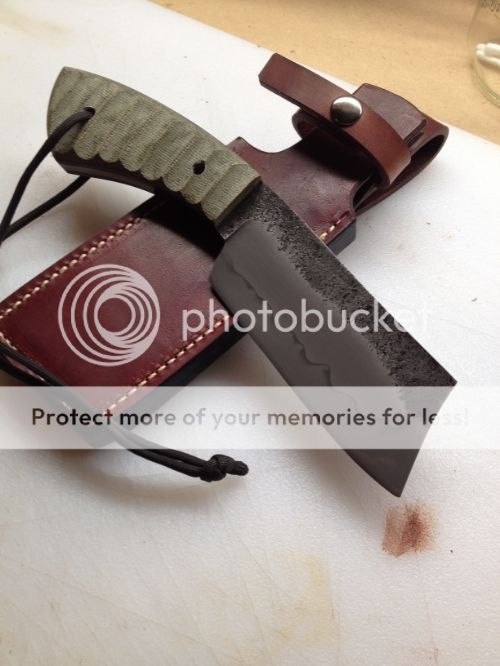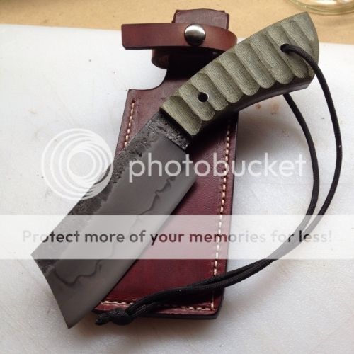 Catchy title huh!!! 9 total inches long, 1-3/4 inches at widest point of blade, Sharp as hell. Forged out of 1095fg stock, OD green micarta scales, stainless pins, Really nice Hamon, iphone pics dont do it justice, Sheath is nice as they come. Price shipped with sheath is SOLD paypal. paypal address is c.edmondsonknives@yahoo.com as always feel free to call with any questions, 256-252-9478