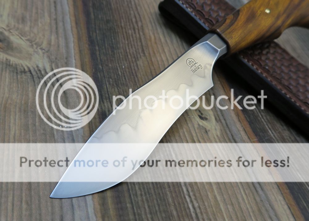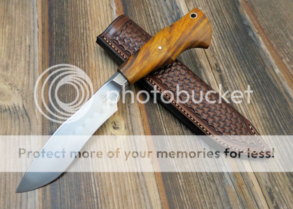 The sheath is 7-8oz hand tooled leather from Wickett and Craig. The knife fits snugly but draws easily.