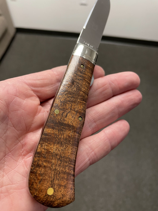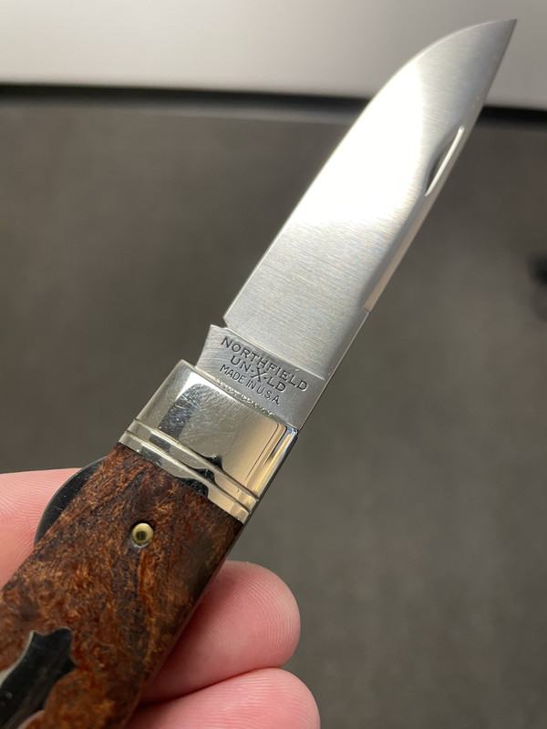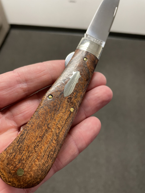 Up for sale is a 23 LL CK SFO in Mesquite. It has seen pocket time and has sliced fruit but has been well taken care of. There are a few snail trails on the bolsters from pocket wear and pocket scratches on the shield - all cosmetic. No pitting whatsoever. Blade has been Flitz’d so the etch has faded. Will make a great - hard to come by- user.