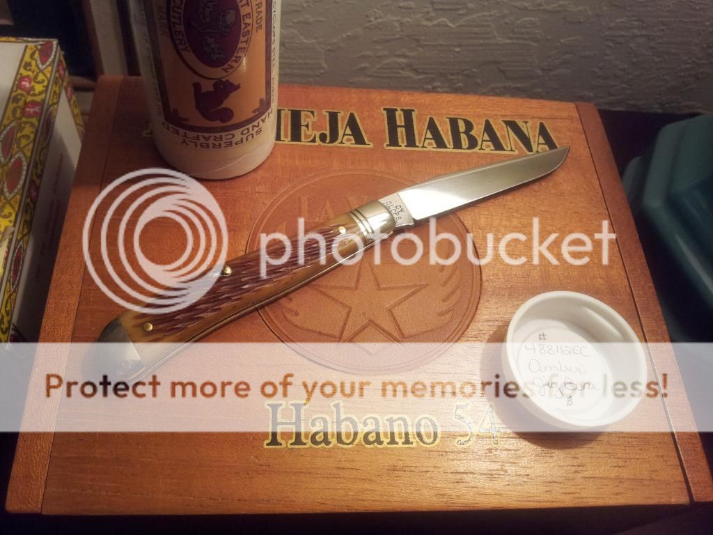 GEC 48 pattern- NIT, Single SS blade, amber bone covers with acorn shield. Smooth 6 pull with half stop and wonderful snap. Blade is a bit off centered as shown in the photo but does not rub. Comes with original tube.....hard to find these, priced to sell at $OLD to Dan