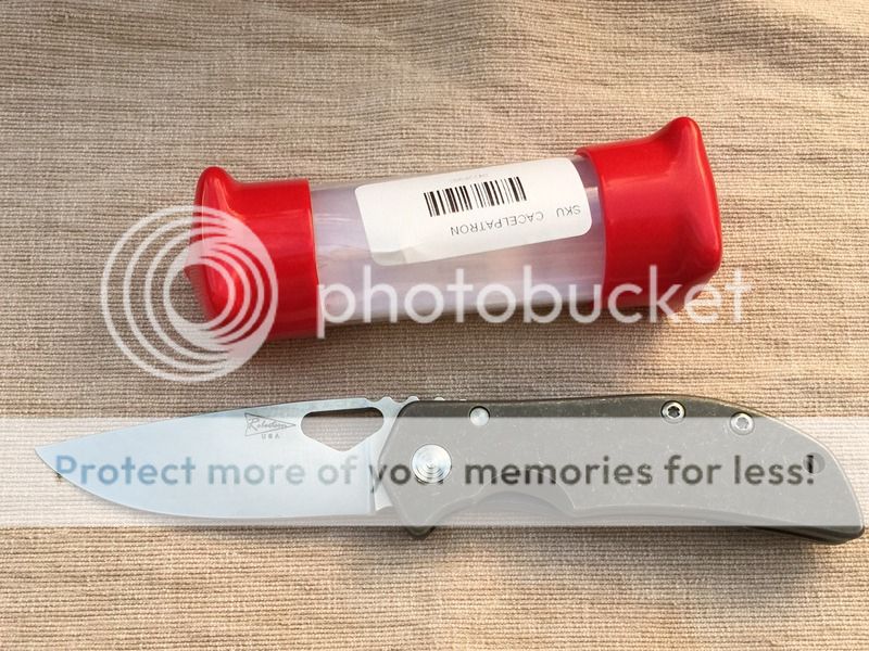 Excellent condition Gen 3 Calavera Cutlery El Patron 3.25" with CTS-XHP blade. Knife was a light user but can't find any evidence of carry and it's still got a sharp original edge. Locks up rock solid, very smooth bearing pivot action, and no issues whatsoever. This is a Gen 3 with the bearing pivot and lockbar insert, and it includes the tube although the plastic of the tube has cracked in shipping.