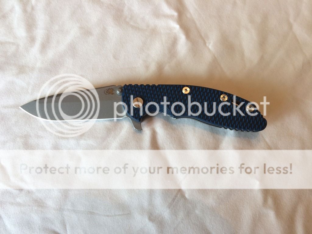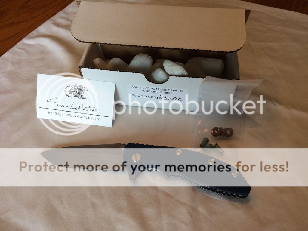 Hello, I have for sale a Hinderer 3.5 Spanto no choil Full working finish, including thumb studs. Blue and black scale. I picked this up recently on the forums from a great member. Knife looks unused. I did install a WF titanium scale but removed it after I decided I like having a choil. Comes with an extra set of green shamrock nuts.