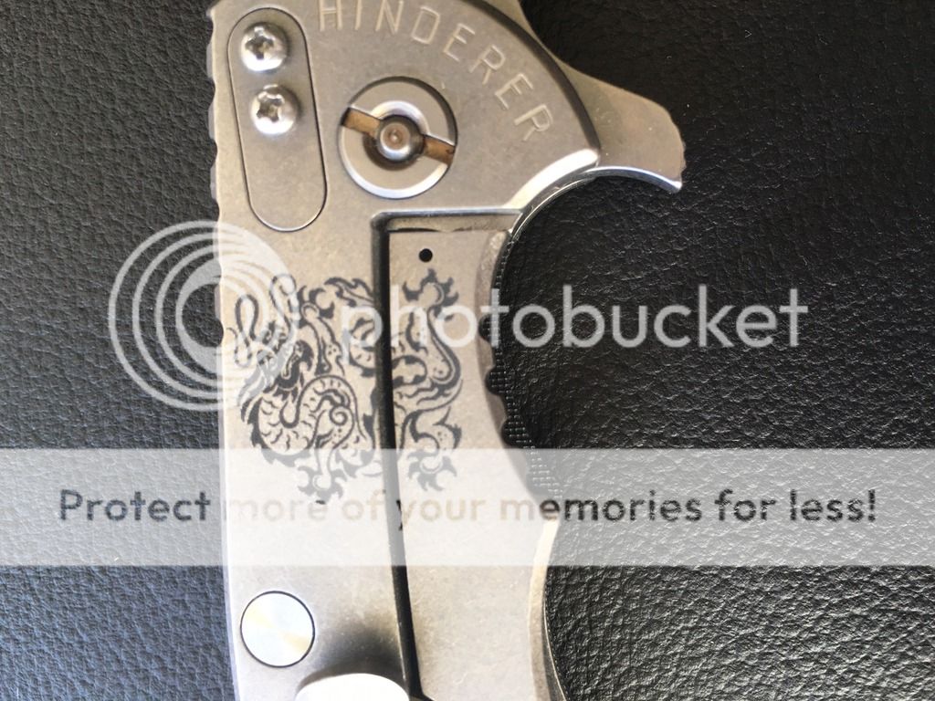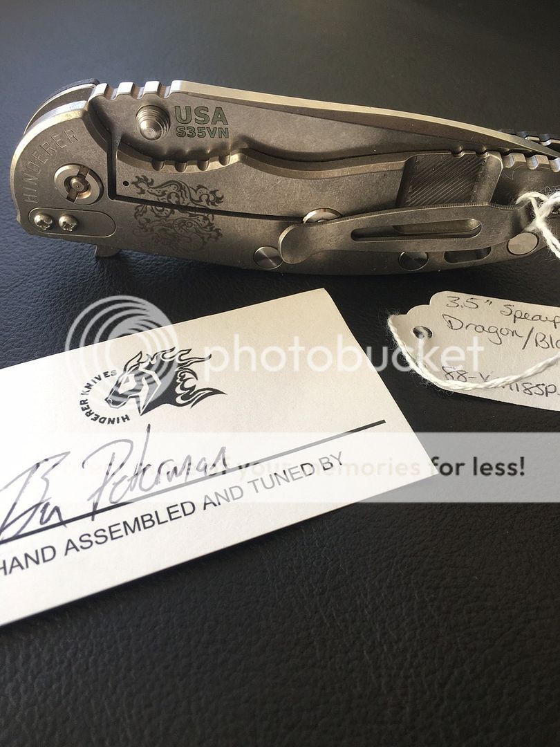 Selling a like new Hinderer XM-18 3.5" Spearpoint with Steel Flame Dragon etched on lock-side. Never carrier, used or taken apart. Black G10 scale. Strong detent on this one.