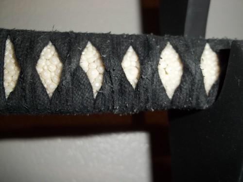 Handle is wrapped in cotton ito, and has very very high quality samegawa or rayskin (Namikawa #1 samegawa)