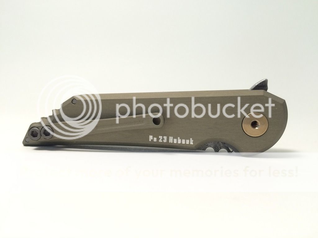 Just got this in direct from Jake, it is a killer little custom knife but too small and expensive for me unfortunately so I'm going to let it go here at a slight discount. This knife is absolutely brand new, comes with the Hoback leather pouch and custom pivot tool as shipped from the man himself. The detent is perfect, the flipping action is amazing! This knife features a custom hand ground CTS-XHP Stainless Steel blade, it is acid stone washed and razor sharp. It is small, 6.5" overall with a 2.5" blade very pocket friendly if you want the coolest little EDC knife ever made! I'm not open to any trades at this time, first "I'll take it" in this thread gets priority over any PM or email. If you want the knife please post an "I'll take it" and then shoot me a PM for Paypal info, I try my best to ship same day or next business day that payment is made. Due to the complexity and added cost I would like to keep this in the USA but I'm willing to negotiate, expect a ~$15.00 increase in price to cover shipping if you are outside the USA.