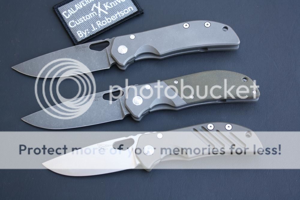 The Knife for sale is pictured in the middle. Ti Bolster with green micarta scale.