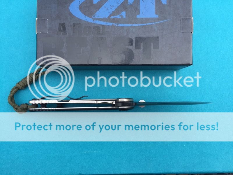 Carried maybe 4 times (opened one box) and in excellent condition. Extremely sharp factory edge! Locks up solid around 40% with absolutely no blade play. Smooth action, no lock stick, .156" thick x 3.5" blade centered perfectly, and overall just a very high quality knife. This knife equals or exceeds any mid tech Framelock I have owned for worksmanship and materials (Sebenza, ZT's, Strider, etc) with titanium frame and clip, ceramic detent ball, S35VN blade, inset recessed liner into G10 side. I guarantee you won't be disappointed with the condition or function of this knife!