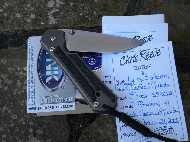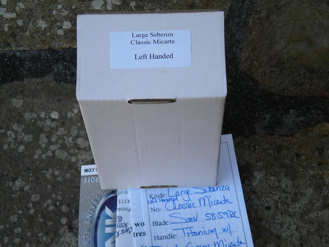 Lightly used left handed Large Classic Micarta Sebenza. Has original box, wrench, and all the papers.