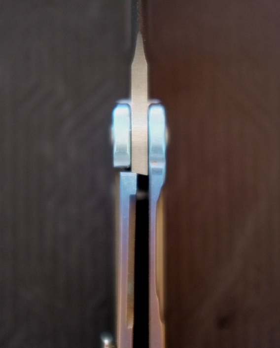 Blade is perfectly centered and early lockup. This is a very nice slim knife great for EDC. Built like a tank but very easy to carry.